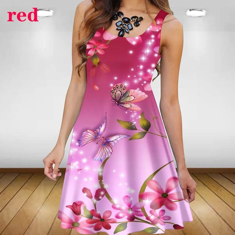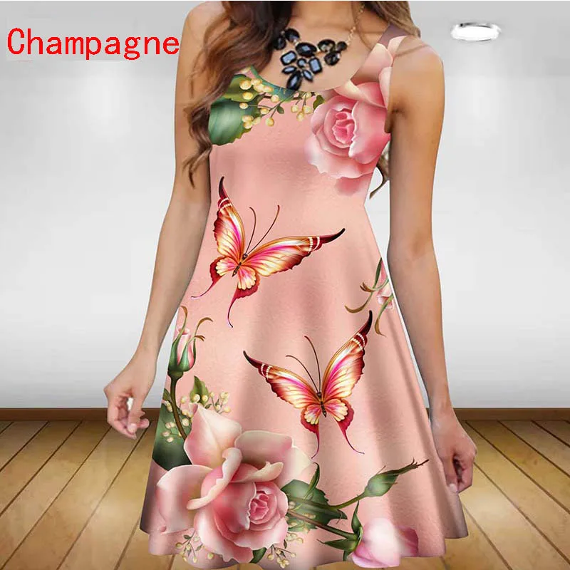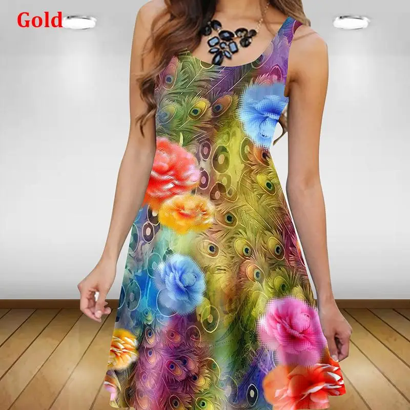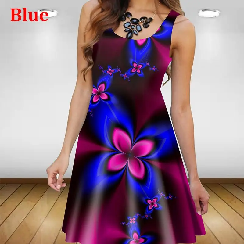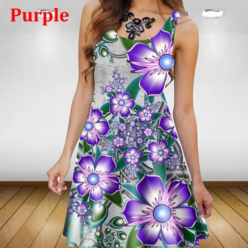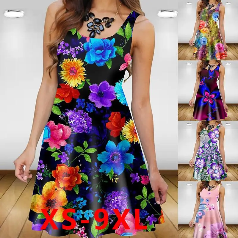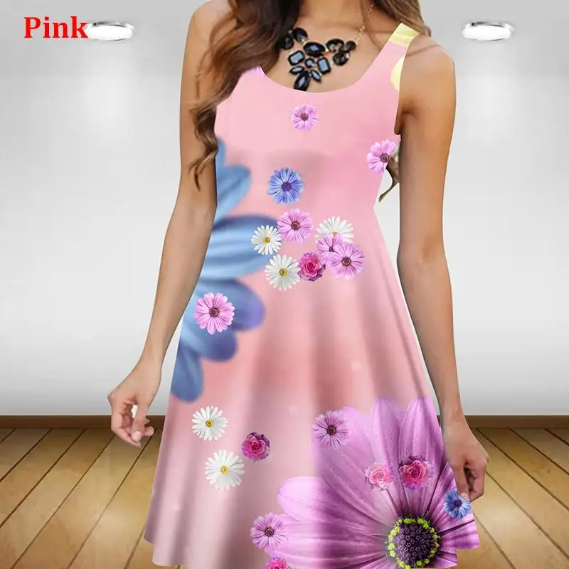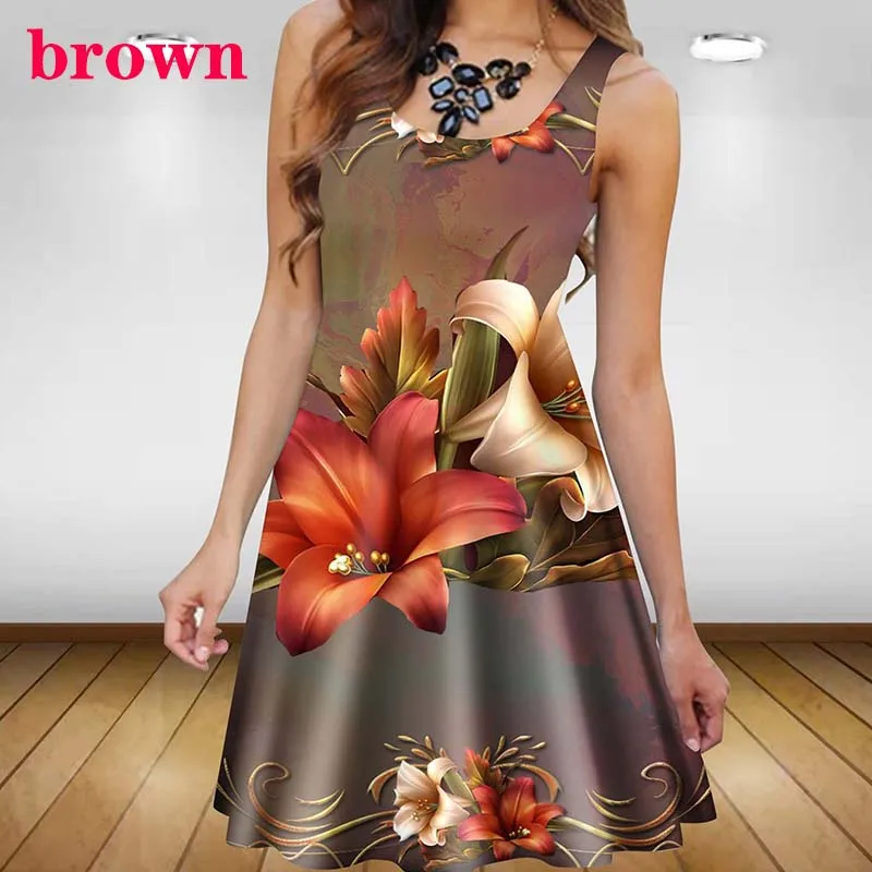 Plant Flowers 3D Printed Women Dress Elegant Sweet Casual Sleeveless A-Line Dresses 2023 Oversized Summer Sexy Clothing Sundress